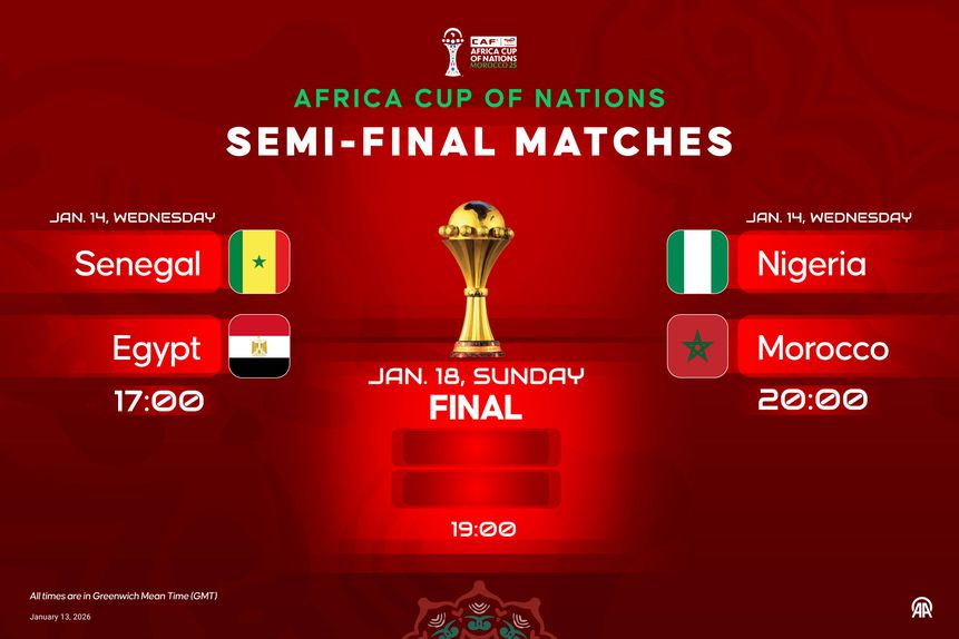 Nas meias-finais do Campeonato Africano das Nações (CAN) 2025, que hoje, quarta-feira, dia 16, terão o seu pontapé de saída, vão estar quatro grandes do futebol do continente: Marrocos – selecção que reúne a maior vantagem de favoritismo não se pelos pergaminhos do seu futebol mas também pelo facto de jogar em casa – Senegal, Egipto e Nigéria.